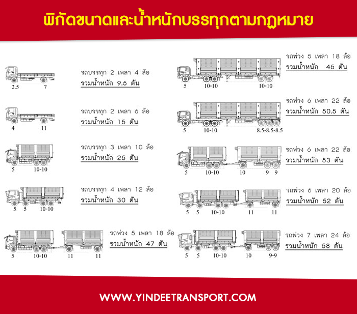 รถบรรทุก10ล้อ และรถเฮี๊ยบ รับน้ำหนักได้ไม่เกิน 25 ตัน รวมรถ